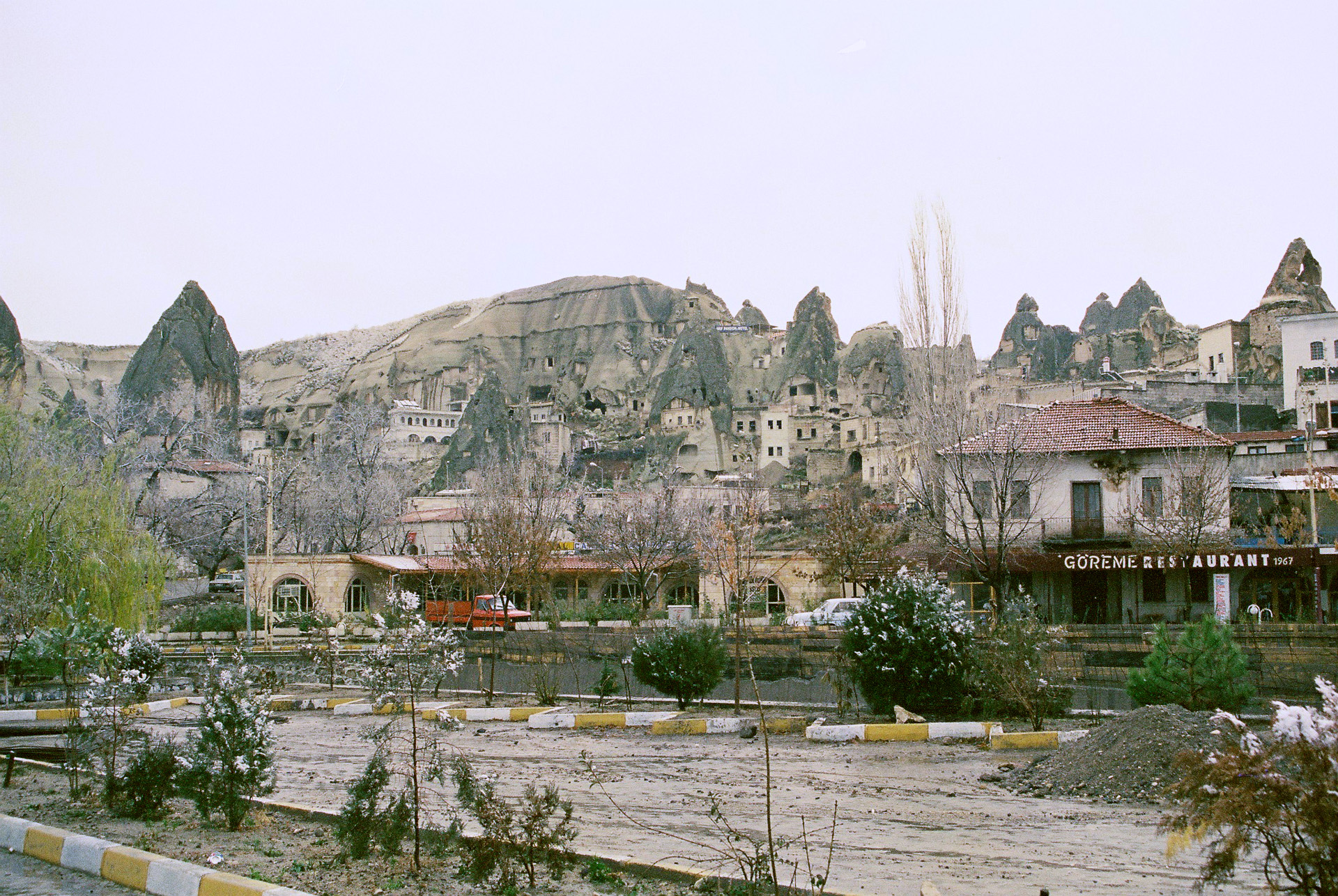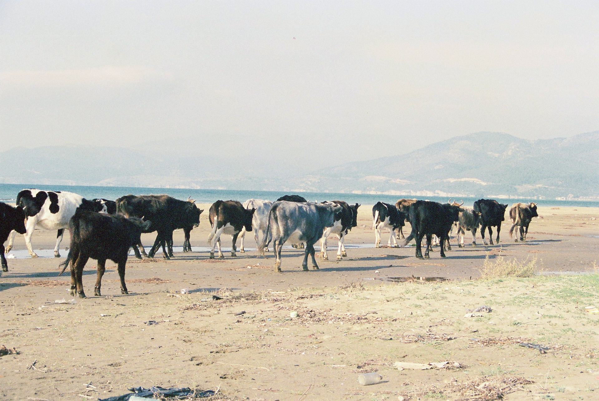 冬なので、イメージがだいぶ違うけど、まあまあ青い空と青い海。牛と牛飼いのおじいさんが歩いていた。サンドイッチ150Kを食べて、街に戻るのだが、帰りのバスはなく、トボトボ歩いていると、親切なトルコ人(ただし絨毯屋)が車で通りがかり、乗せてくれた。ありがとう!