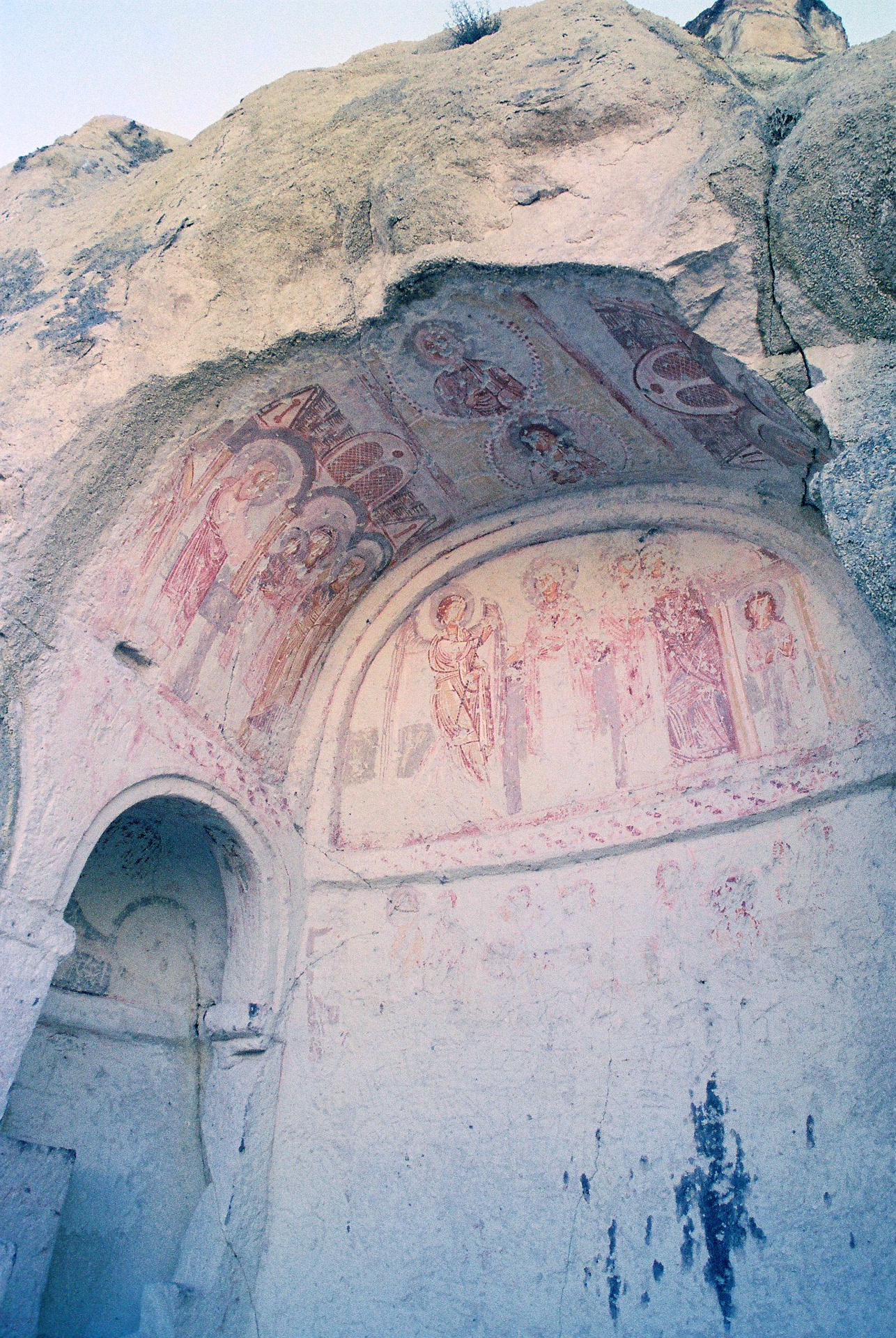 ギリシャ文字の彫刻やキリスト今日の彫像など。
