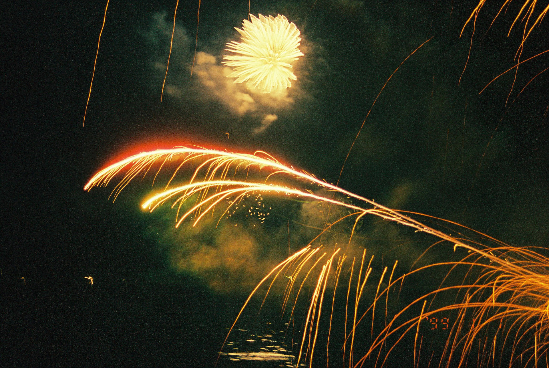 カウントダウンはそれぞれの店で素人が打ち上げ花火を上げる。そのうち、いくつかは失敗し、こっちに飛んできて、みんな逃げ惑う。軽くやけどした。その後は、灯篭を熱気球にして飛ばす。風に流されて並んで飛んでいる風景が天の川みたいで素敵だった。