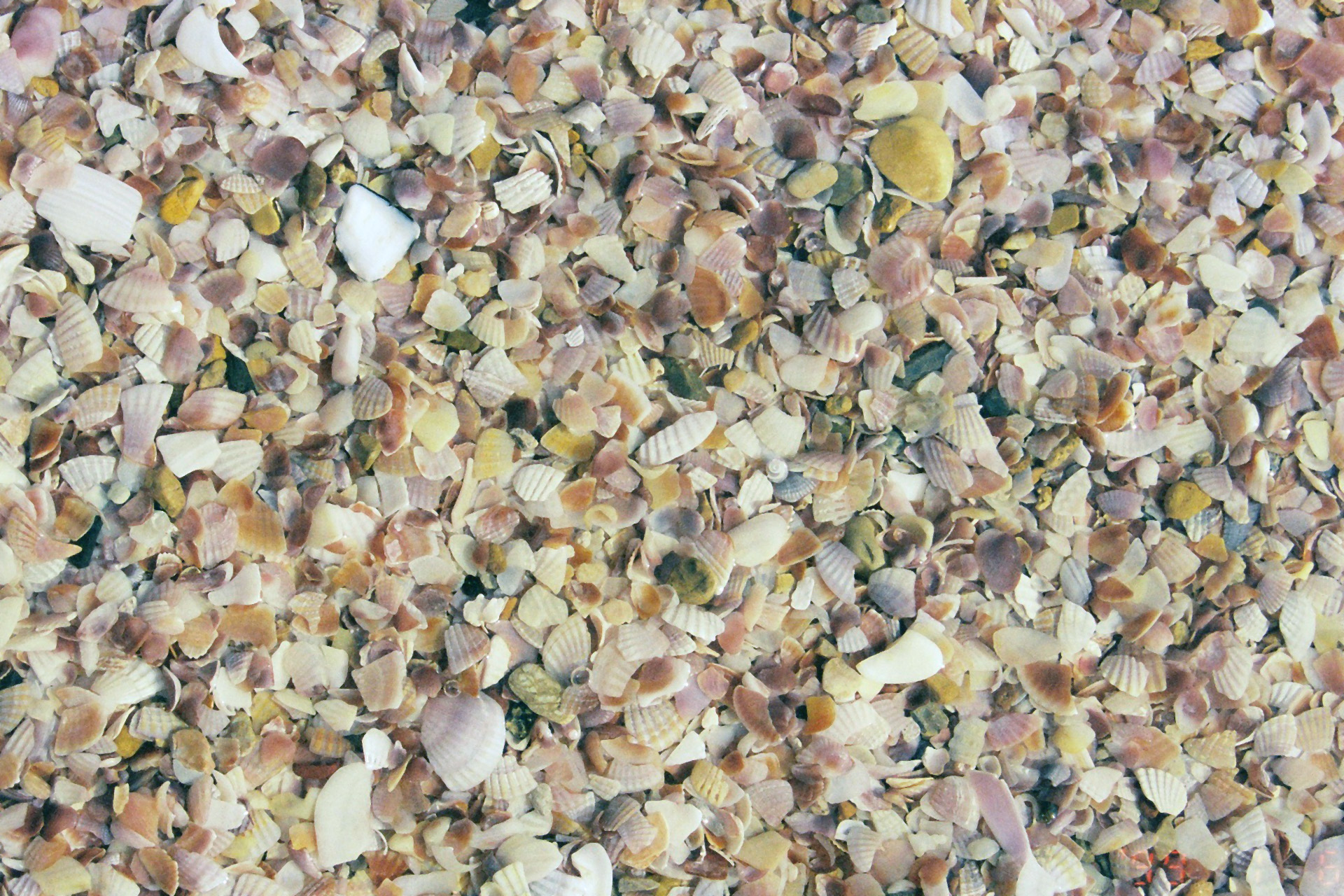 ここのビーチは、砂浜じゃなくて、砂がすべて、細かく砕けた貝の砂。ピンク色でキレイだ。
