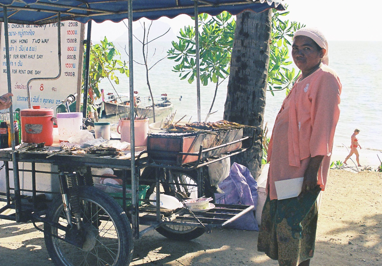 渡し船で40Bx2=80Bでアオナンに戻ってくる。サテを20Bで買い食い。