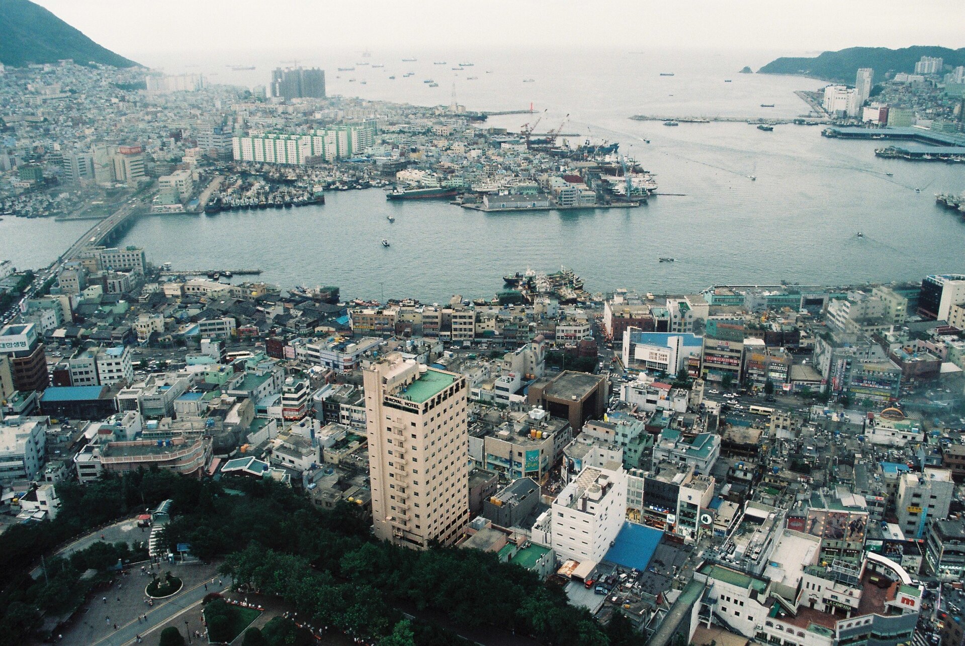 空港から南浦洞までバスで移動、ロイヤルホテルという宿に投宿。リストプライスは60,000₩だが、何かの割引があり、39,000₩で泊ることができた。お湯も出るし、10階で見晴らしがよく、日本の衛星TVも見ることができる。早速、昼寝をする。