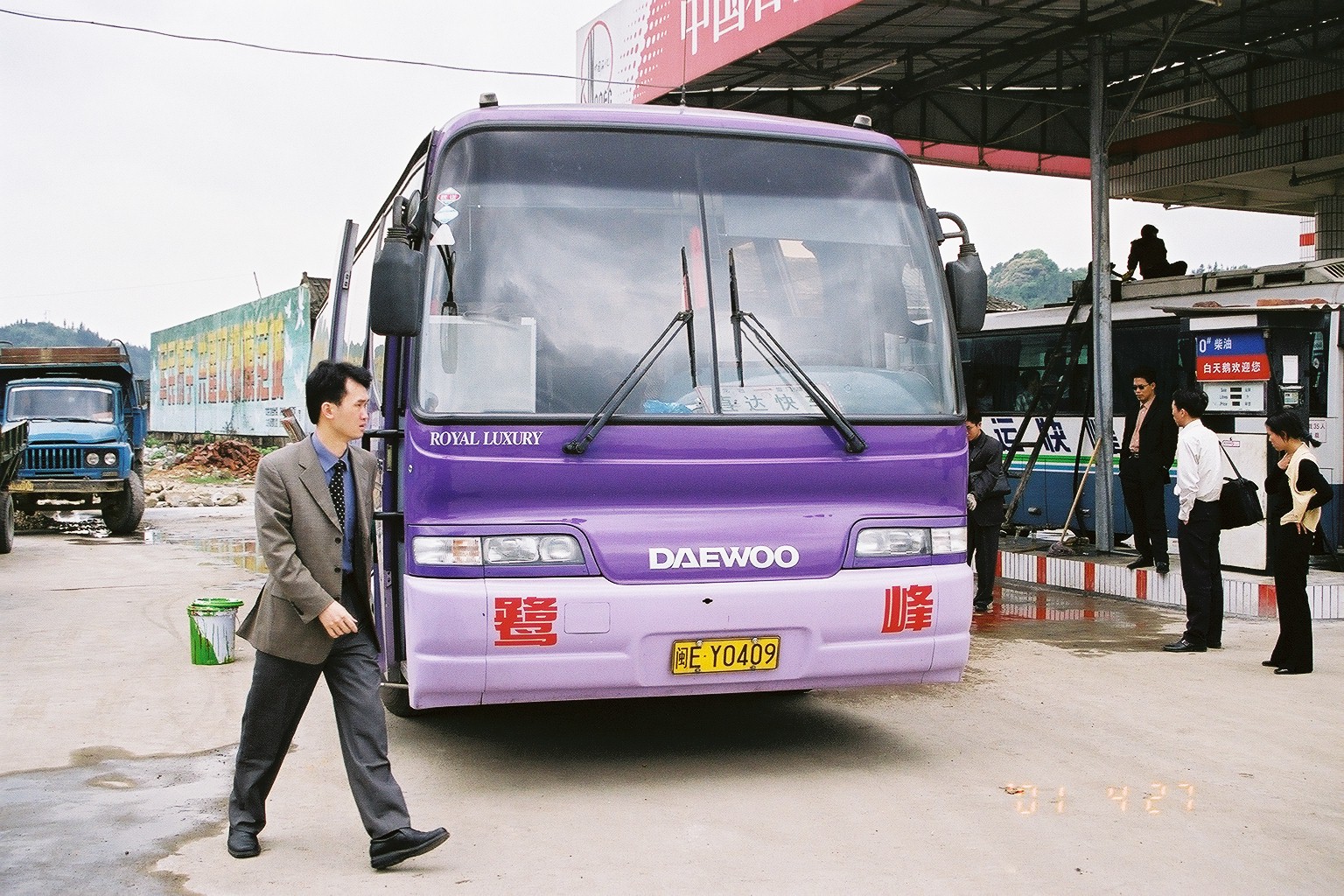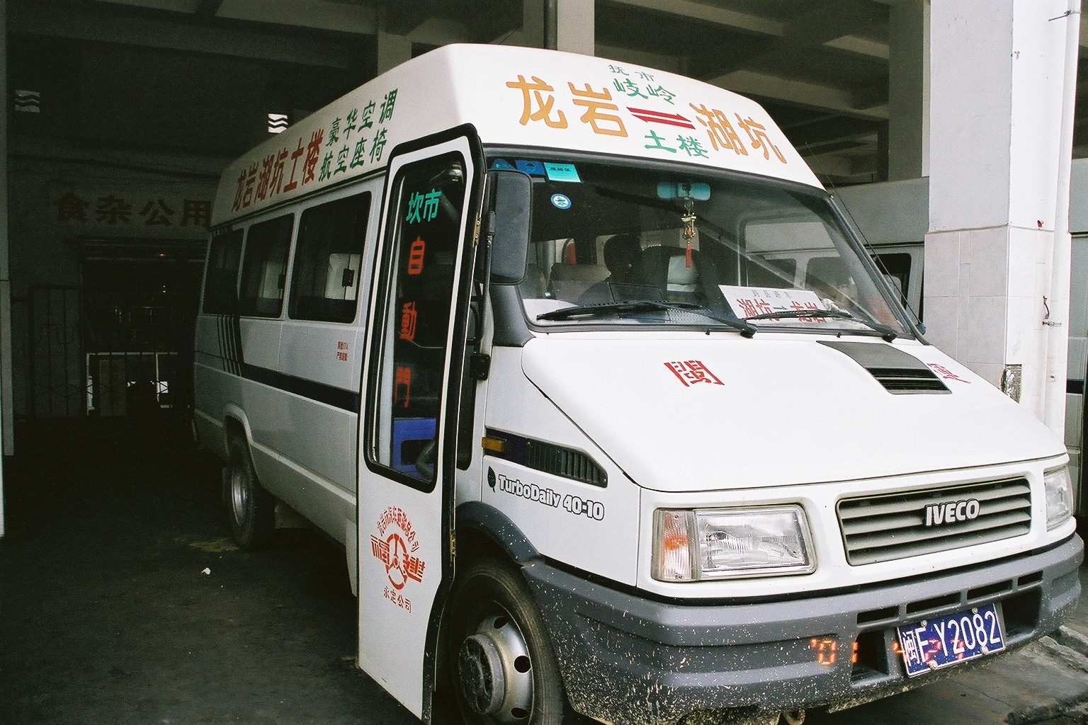 円楼観光の拠点となる永定行きのバスは7:20発だが、国境で思うように両替できなかったため、金がなくなった。これから行く先は満足に両替ができない田舎町である。仕方なく中国銀行が開く8:30まで待ち、 十分な両替をしたあと、9:45発の龍岩行きのバス(55元)に乗り込んだ。