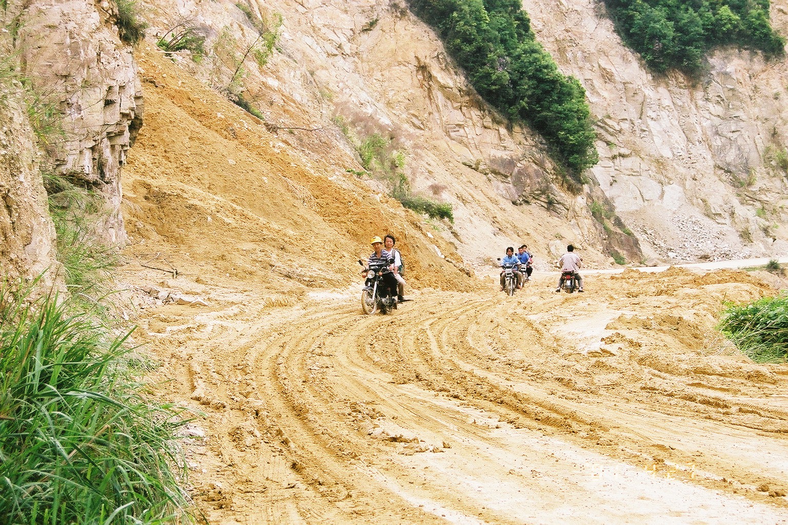 龍岩を14:40発の湖坑行き(17元)に バスを乗り換え、湖坑でバイクタクシーに拾われる。バイクタクシーで行く道は、ひどい悪路。