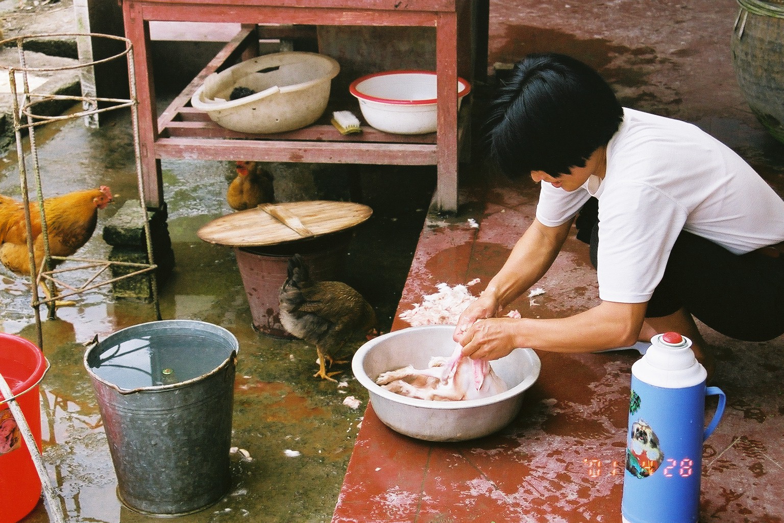 10時半くらいに、運転手の実家に行き、まだお昼には早いと思っていたら、お母さんが、庭の籠からかわいい白兎を出してきて、右手には鉈。かわいくぴょんぴょんしていたところから、料理が始まった。