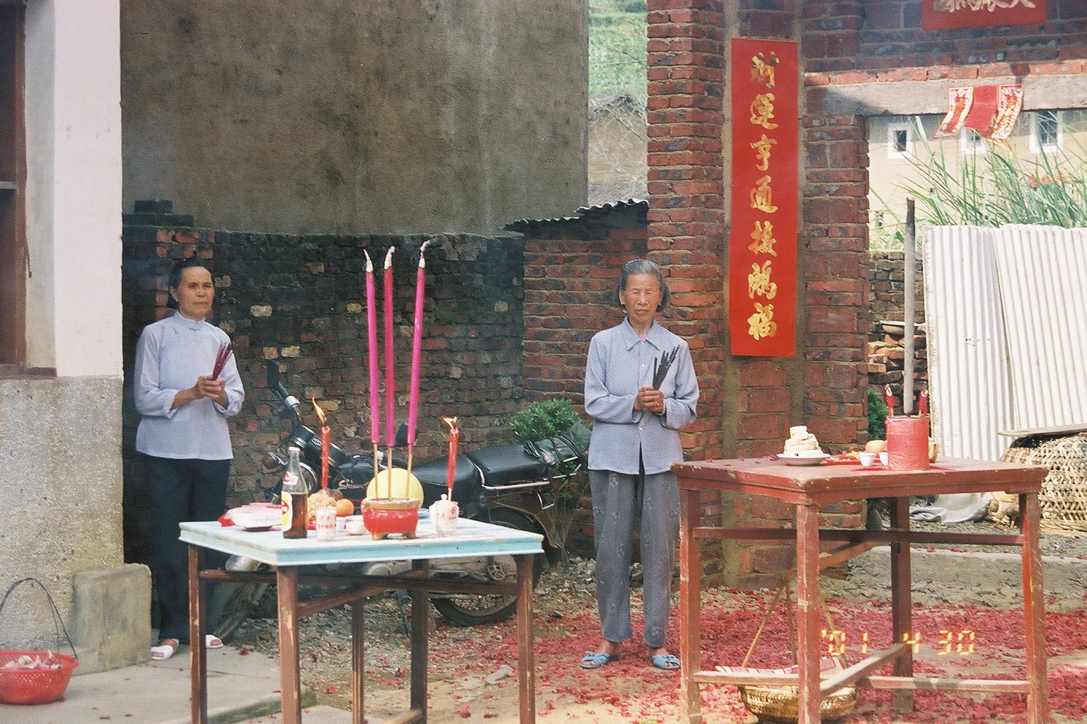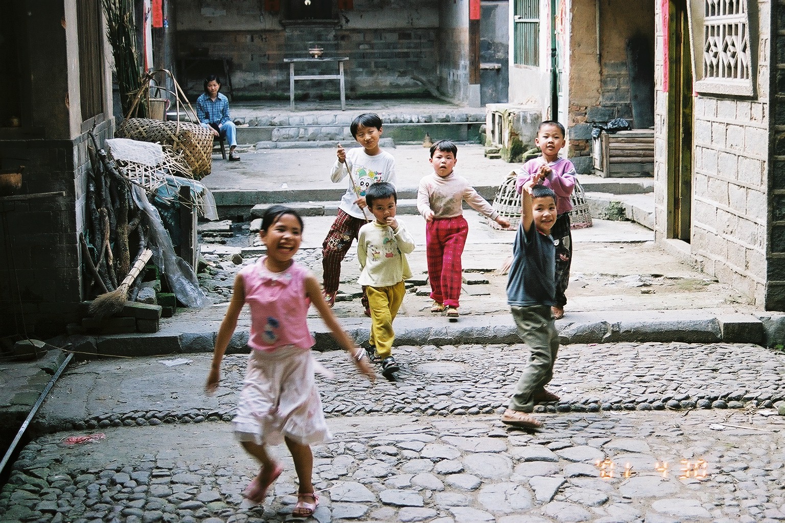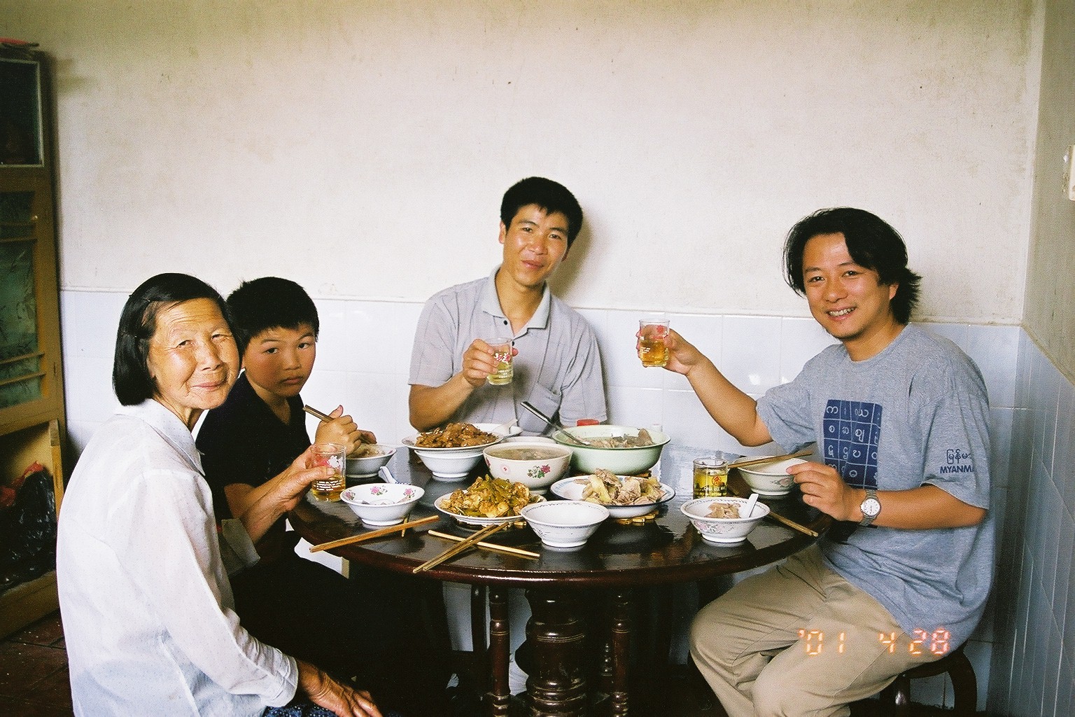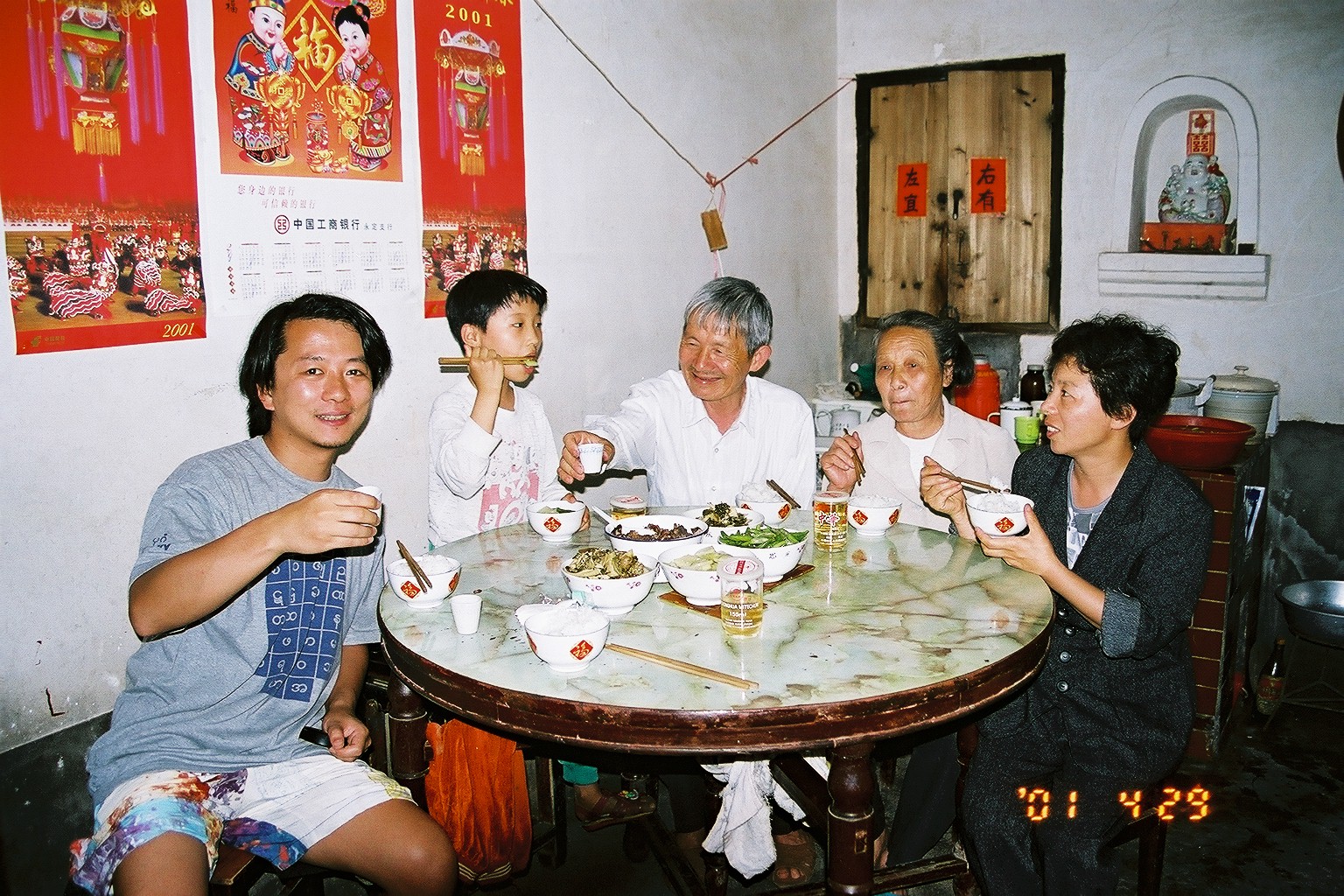 振成楼に戻り、お散歩。夕食前に行水させてもらい、一緒にみんなで夕食。芋、豚肉ピーマン炒め、タケノコの煮物、高菜炒め、豚のスープが2種類、豚の皮の八角煮、どれも美味しい。多分自家製の、糯米酒(ロンミーチュー)をたくさんいただいた。客家料理。