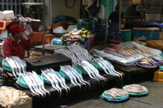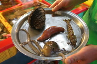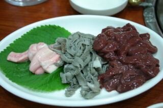 | 09JUN | 昼食@チャガルチ市場:ヒラメ、イカ、アナゴ、あわび、ナマコ、ユムシ44,000₩ マクドナルド:かき氷、飲み物 3,500₩ 夕食:コムタン、焼酎など 14,800₩ 屋台:ワッフル等 1,000₩ |