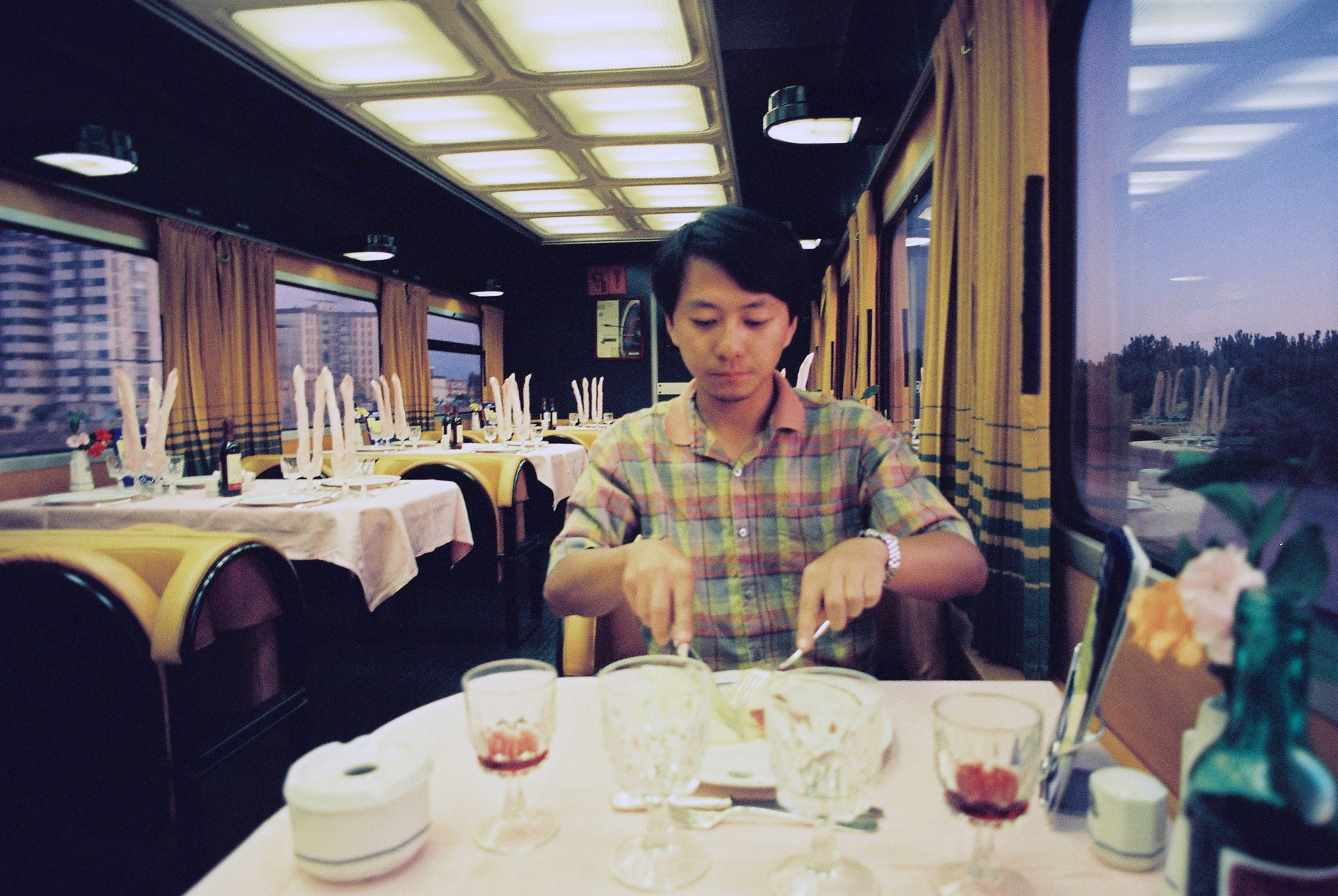 後でお腹が空いて、食堂車に行き客の入れ替えの隙間の時間に入れてもらい、車両貸し切り状態で豪華夕食を頂いた。急いで食べろと言われたけど、本当にありがたい。